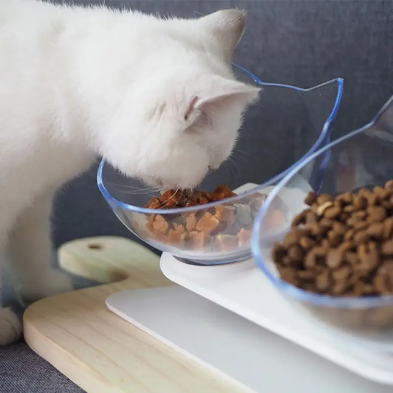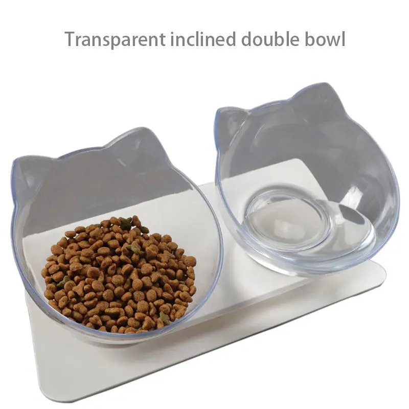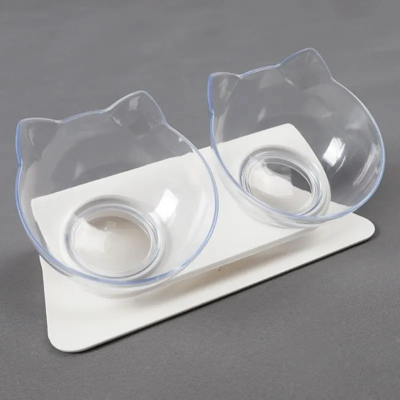 Plastic Non-slip Double Pet Feeder Bowl Adjustable Pets Feeding Dishes Inclinable Small Dog Cat Bow